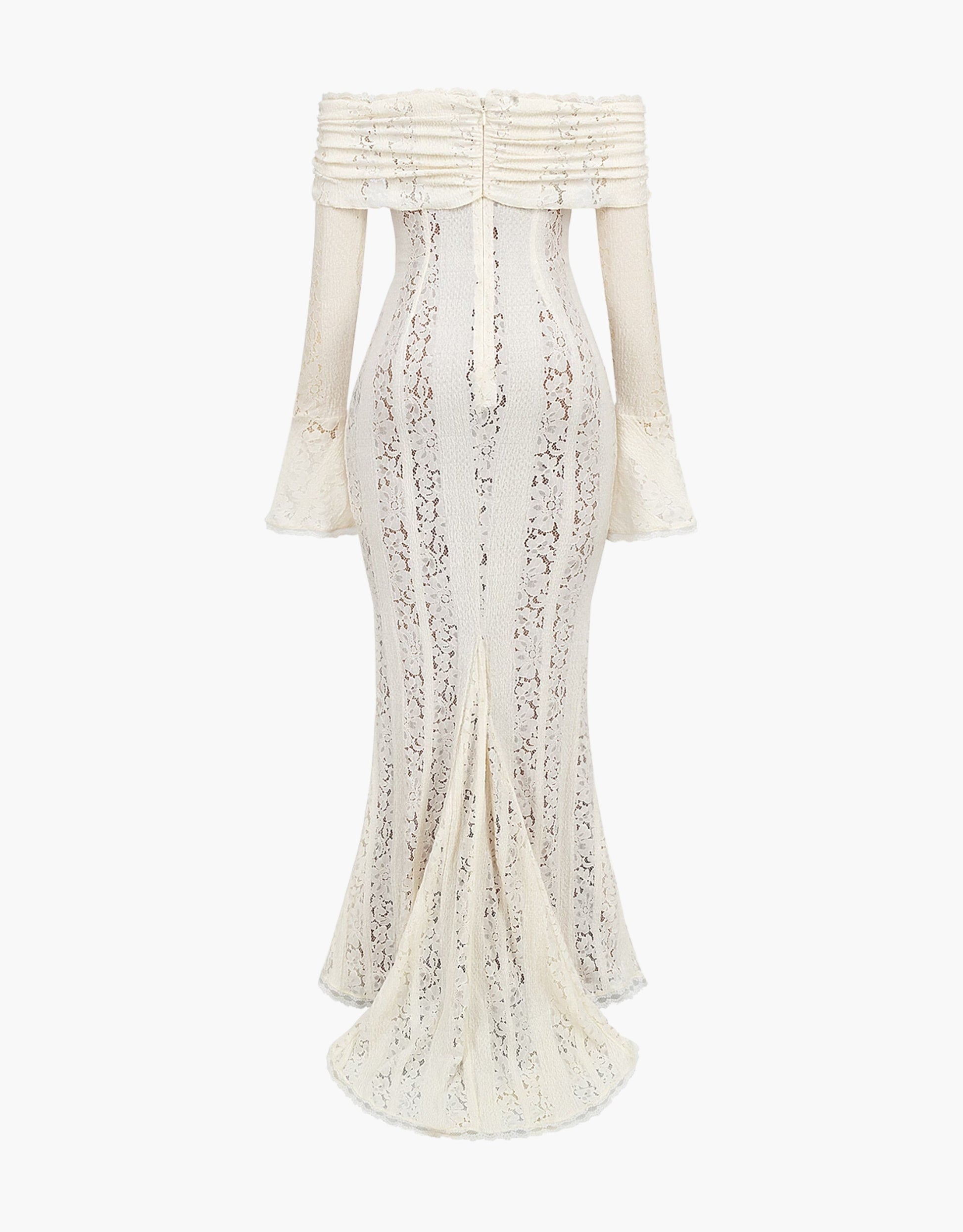 Off-the-Shoulder Lace Evening Gown with Long Sleeves