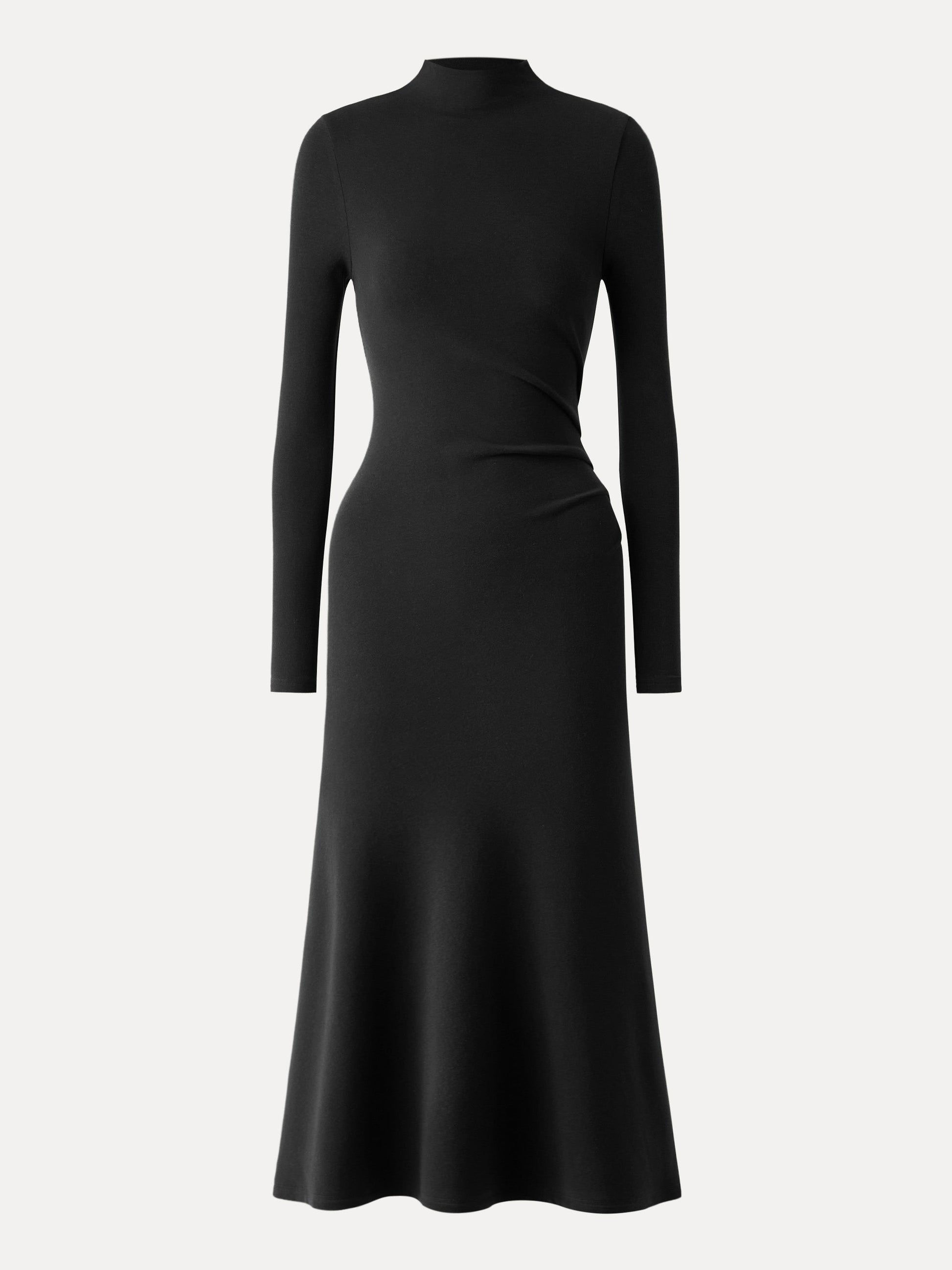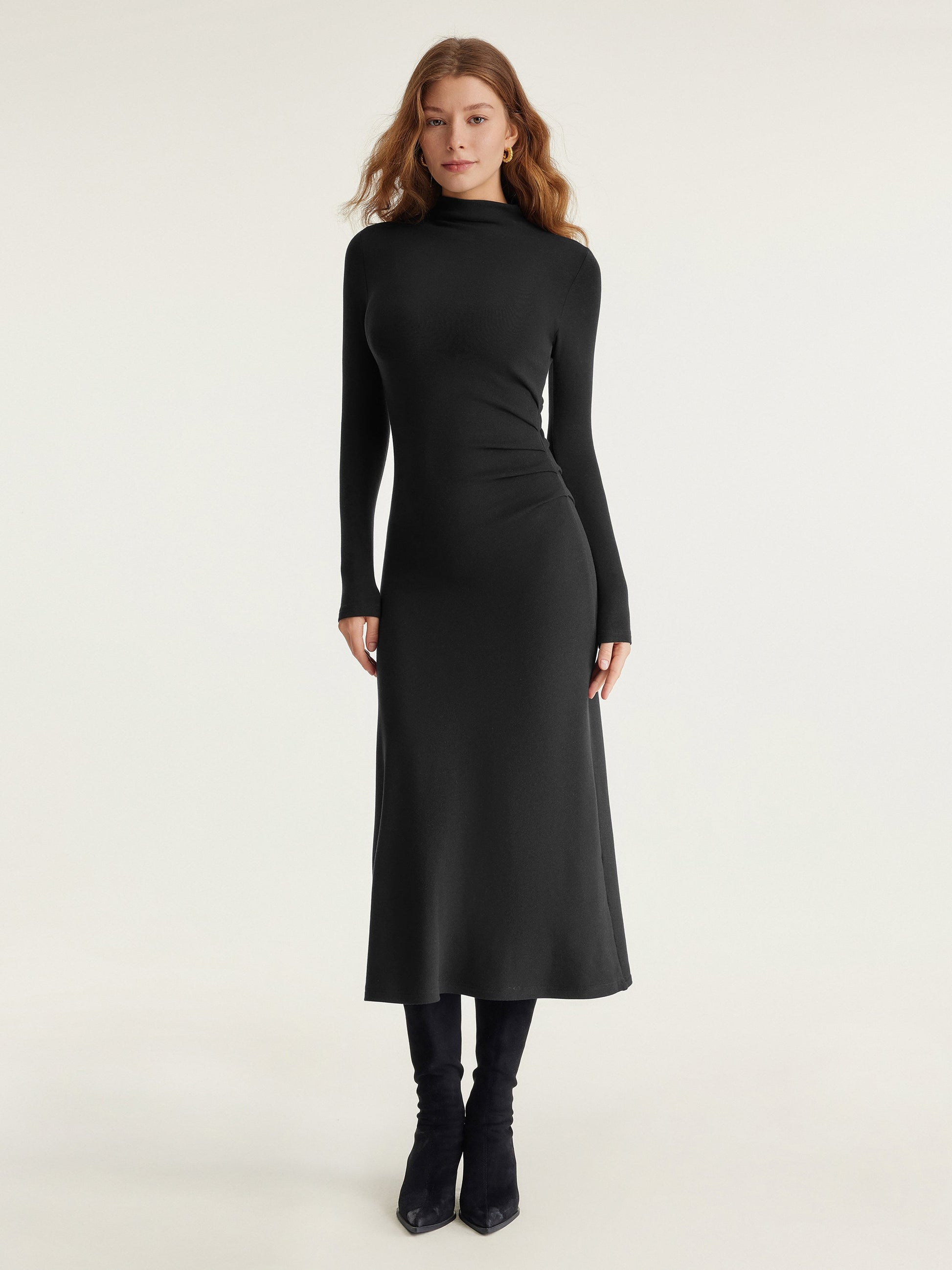 This elegant winter fashion navy long sleeve midi dress, designed for women who love minimalist, timeless fashion. Crafted with a smooth, body-skimming silhouette, this dress offers a flattering fit while maintaining ultimate comfort.