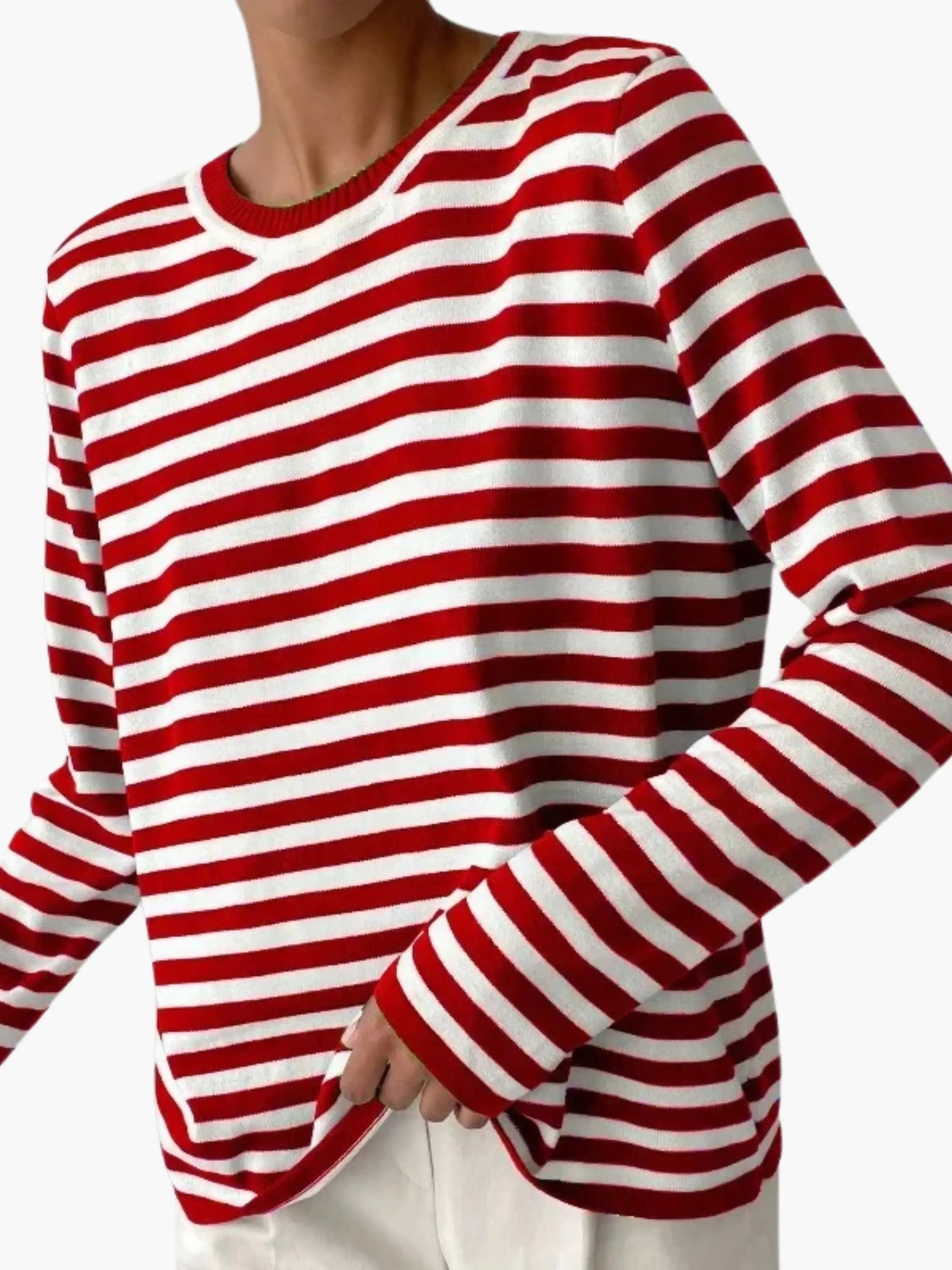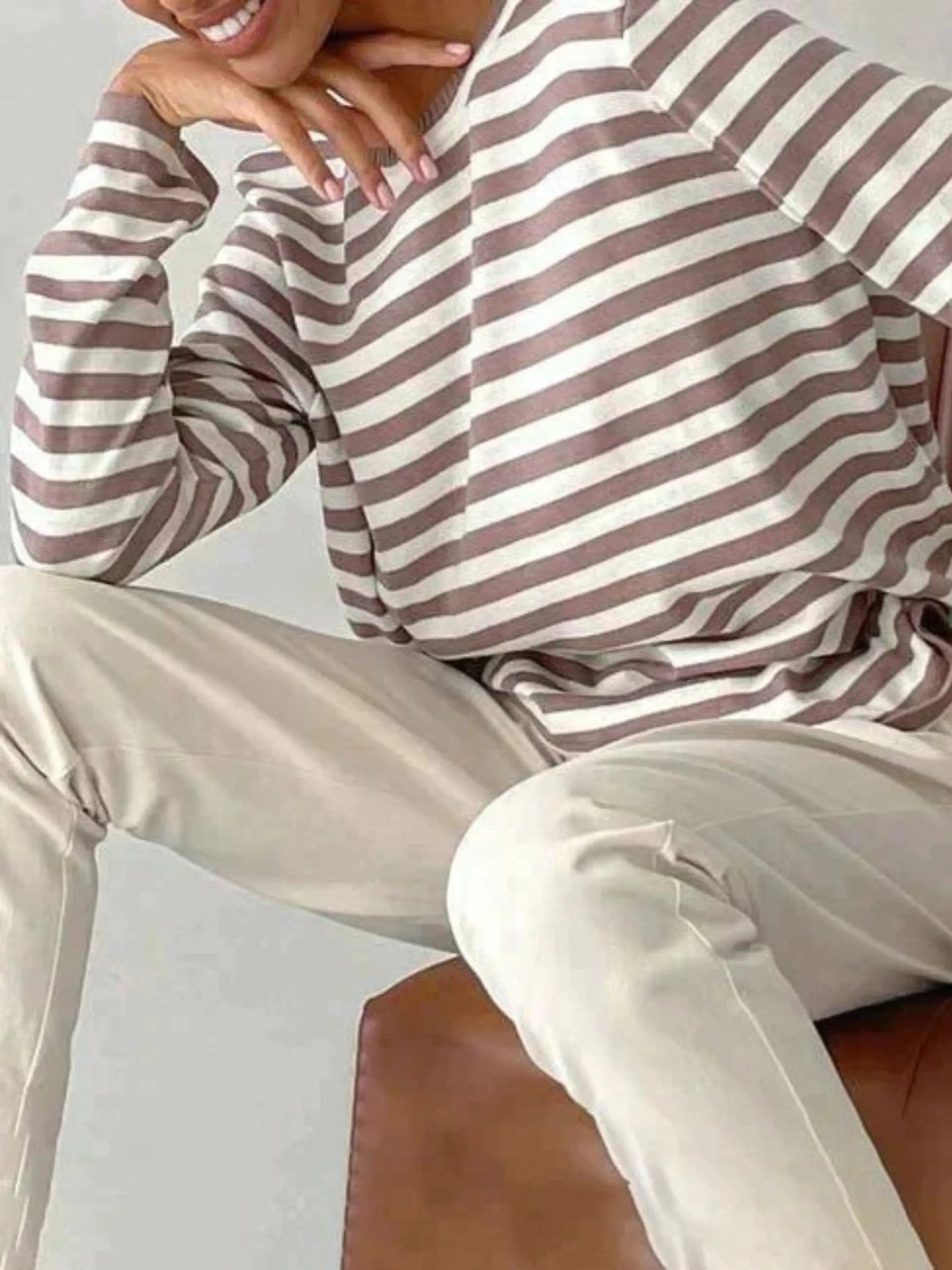 Perfect for casual outings, layering, or cozy hours at home, the Antonia Striped Knit Sweater is an essential basic for every season. Shop now and experience the perfect blend of comfort and style!