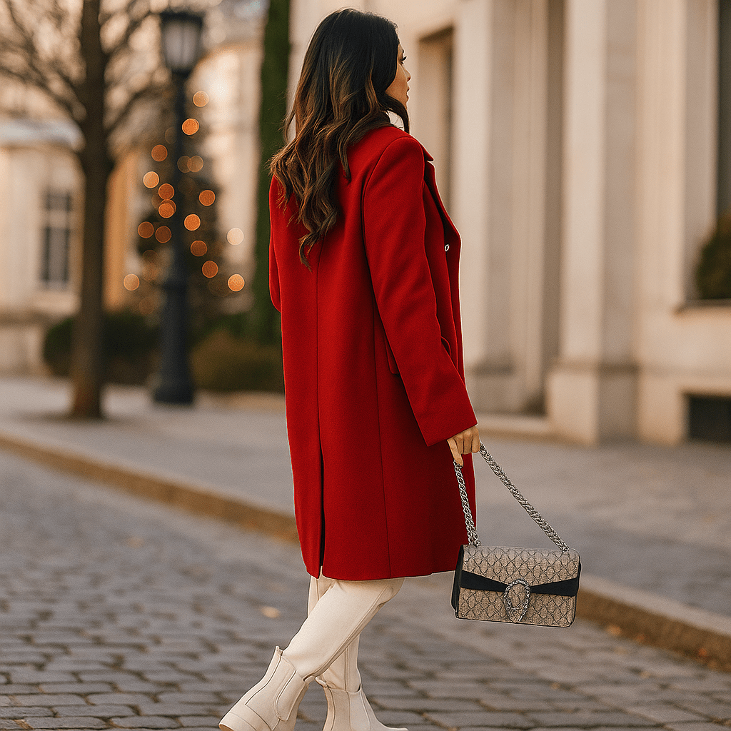 The double-breasted design and classic lapel collar ensure a tailored look that is perfect for both work and leisure throughout the year. Whether you're heading to the office or enjoying a night out, this coat has you covered.