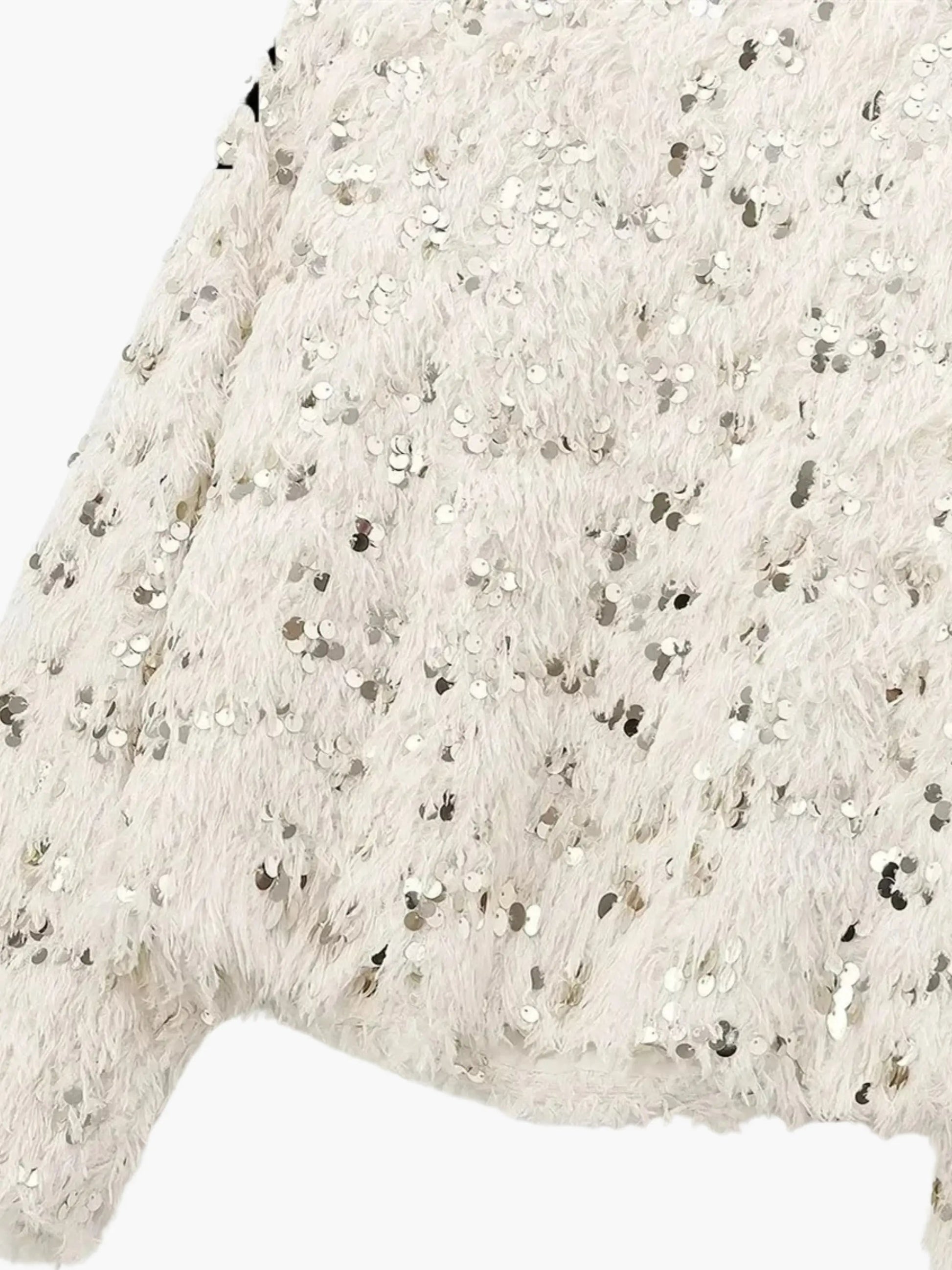 Shine on every occasion with the Wilhelmine Glamorous Glitter Knit Sweater. Crafted from a soft, textured fabric and adorned with shimmering sequins, this top effortlessly adds elegance and glamour to your wardrobe. Whether for evening events, parties, or to elevate your everyday look, this sweater is your go-to choice.