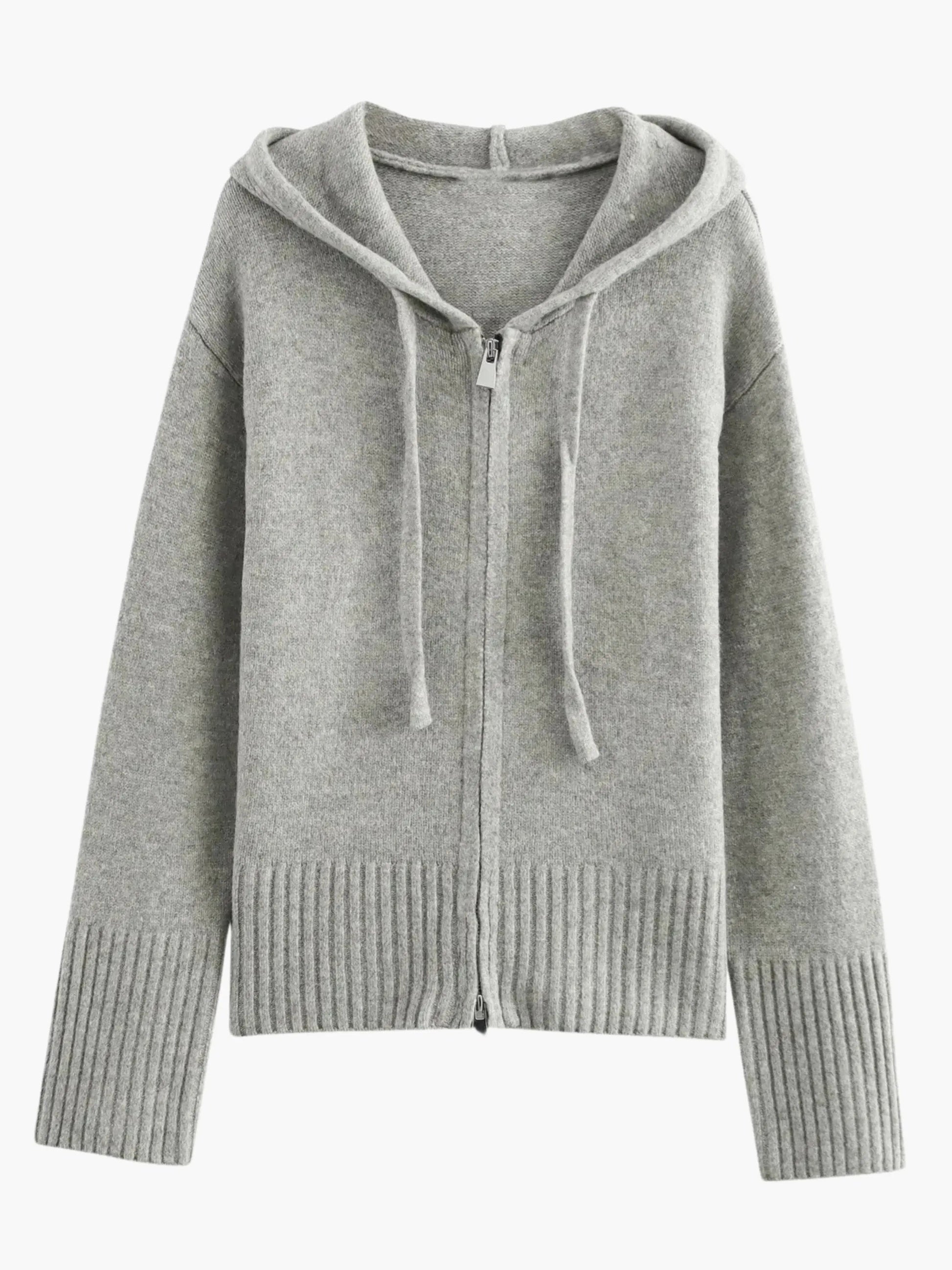 Elevate your wardrobe with the Kornelia Hoodie Cardigan – where comfort meets chic design!